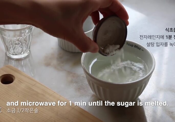 Place vinegar seasoning ingredients in a bowl and microwave for 1 minute until the sugar is melted.