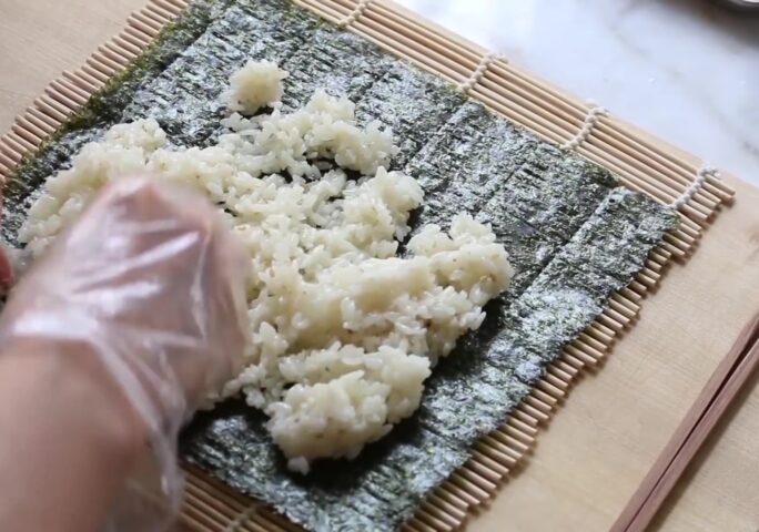 Cut rolled Kimbap into bitesize pieces. Enjoy!