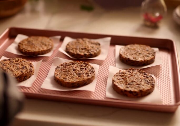 Baking the patties: Place patties on a parchment paper-lined a baking sheet (or squares of parchment paper for each patty for easier handle – see video) and bake at 375 °F/ 191 °C for 10 minutes on each side, 20 minutes total.