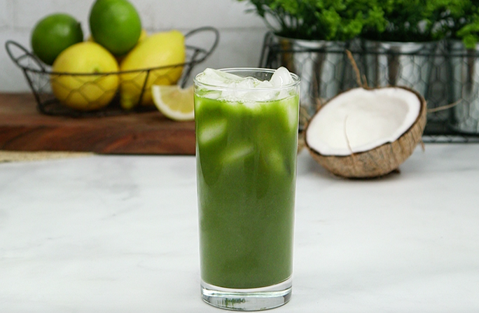 Chlorella Matcha Energy Drink: Add matcha powder and Sun Chlorella Powder to matcha bowl and add hot water. Whisk with a bamboo whisk until completely dissolved. Pour into a glass cup and add coconut water and lime juice. Enjoy!