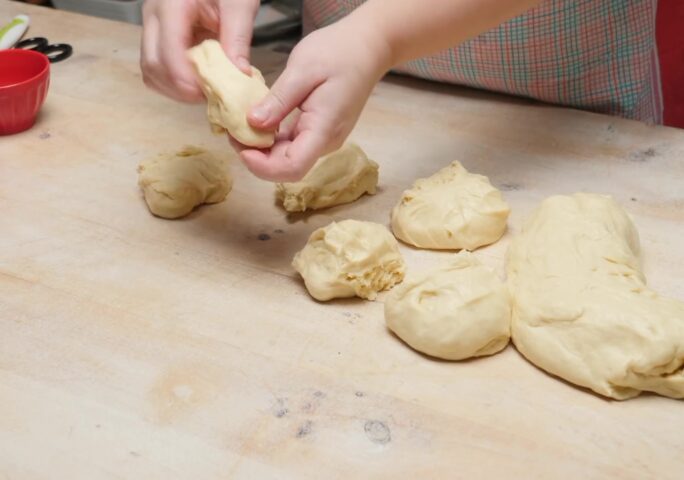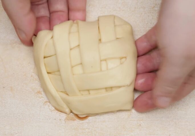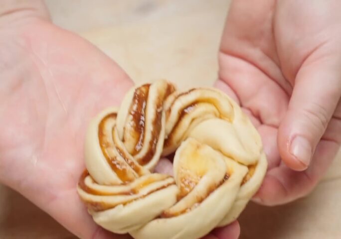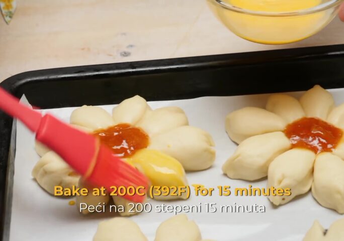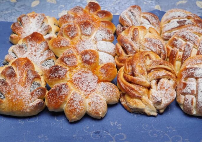 We made one dough, and from it 4 sweet pastries. Pastry with poppy seeds in the shape of a leaf, pastry with apricot jam, in the shape of a flower, with cinnamon in the form of a braid, and packets or scones with apples. This soft pastry can be a celebration cake or Christmas cake, the dough is soft, and can be used in different combinations. It stays fresh the next day. It can be served as breakfast or a snack.