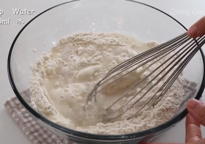In a large mixing bowl, combine the all-purpose flour, salt, and sugar. Gradually add the 2 cups of water while stirring continuously to form a smooth batter. If the batter is too thick, slowly add more water until it reaches a pourable, pancake-like consistency.