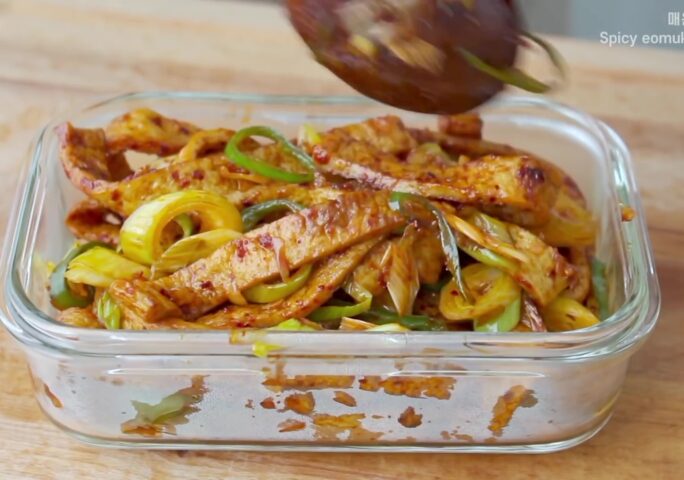 Mix the seasoning in a glass container and add the sliced green onion and green chili pepper. Put boiled eggs and mature them in the refrigerator for one day.
