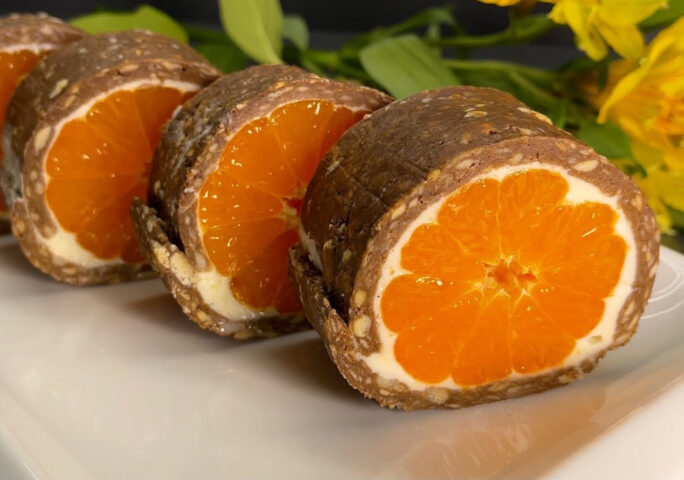 This irresistible treat features a luscious cream cheese filling infused with honey, harmonizing perfectly with the tangy burst of fresh mandarins. Encased in a cocoa-kissed cookie crust, every bite offers a delightful blend of smooth creaminess and crisp cookie texture. With just a hint of cocoa adding depth to the sweetness of ripe bananas, this dessert is a heavenly combination of flavors and textures that’s sure to leave your taste buds singing.