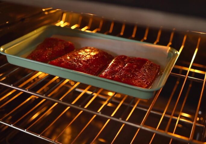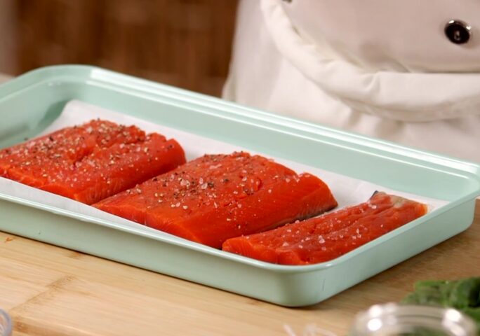 Baking is the perfect cooking method for salmon. It adds a delicate flavor profile to the salmon that makes it interesting. This baked salmon recipe is then paired with a western-style creamy white sauce that blends perfectly with the delicate salmon.