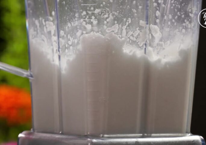 Making coconut milk. Poke two holes on the top of the coconut using a coconut opener. Pour the coconut water into a bowl. Using a hammer, break the coconut into halves. Gently cut the coconut meat. Remove the meat along with this cut by using a thicker knife. Pure the coconut meat and a cup of coconut water in a blender. Sieve through a filter and set the coconut milk aside. (Suggestion: You can get the coconut milk from a supermarket if you don't like to make it yourself.)