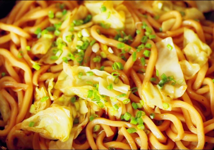 🍜 Slurp! Slurp! Here’s a super-easy noodle recipe for noodle fans. All you need is to stir-fry your favorite ingredients together with the cabbage in your fridge. You’ll be surprised by the crispy, sweet cabbage, and then once again by the texture of the plump udon noodles. If you add some katsuobushi to your liking, its savory smoky flavor will add extra-deep umami to your stir-fried udon.