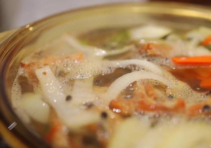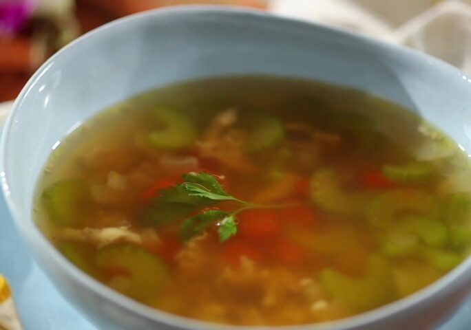 Chicken Noodle Soup is a warm and cozy dish to destress in the evening. The stock is prepared with a mix of vegetables and the roasted chicken back with a bunch of spices for a rich flavor. When ready, the soup is drained and cooked with some vegetables. Try and enjoy an evening chill out with chicken soup in your home.