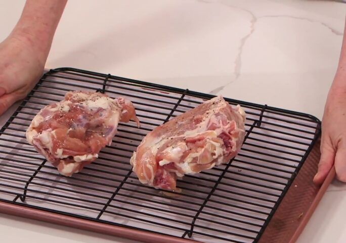 Put chicken backs on a wire rack on a baking sheet, then season with salt and pepper. Roast at 400 °F/ 204 °C until golden brown, 50-60 minutes.