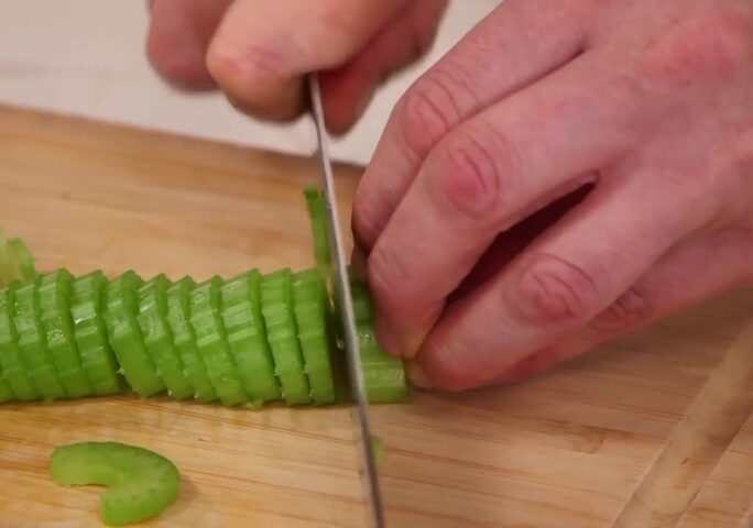 Cut remaining 2 carrots, 2 ribs of celery, and half an onion into a medium dice or 1/4" thick slices.