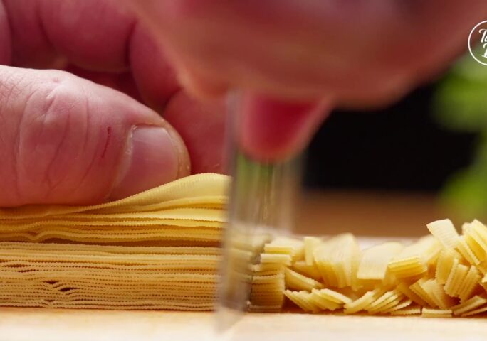 Cut the beancurd sheets into thin strips. Mince celery, carrot, and parsley for later use.