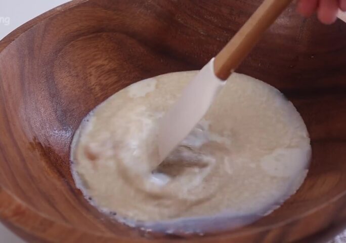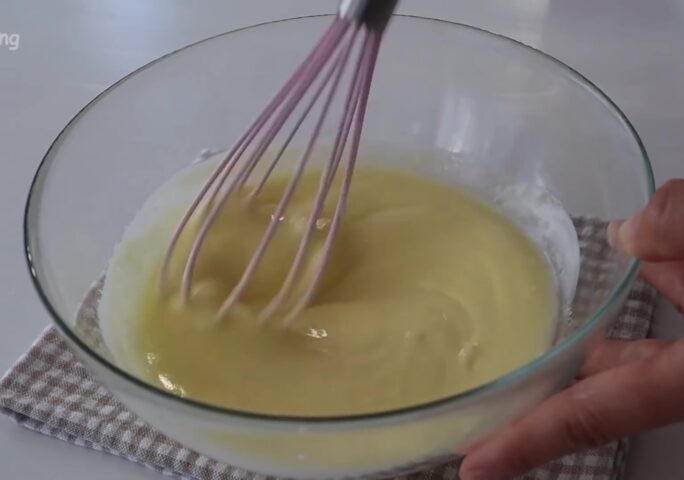 Mix egg with milk, instant yeast, salt, and sugar. Then add flour.