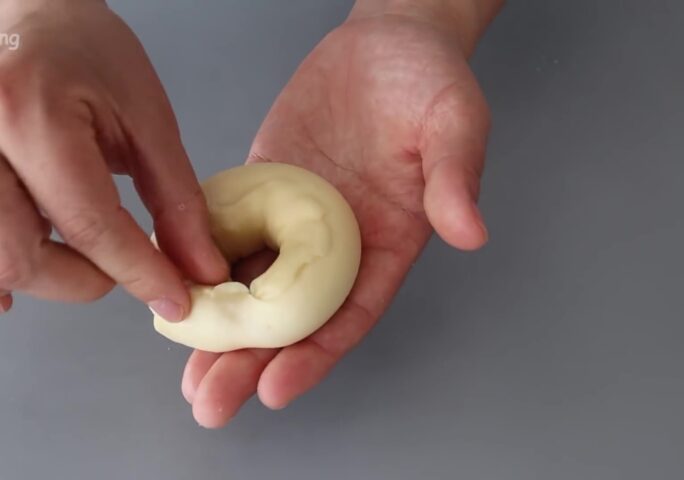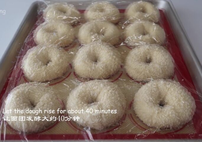 Put it into the water and cover it with breadcrumbs. Donuts prepared this way let rise for 40 minutes.