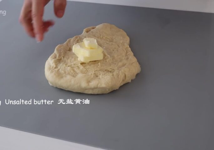 Then transfer it to a table and add unsalted butter. Work the butter into the dough.