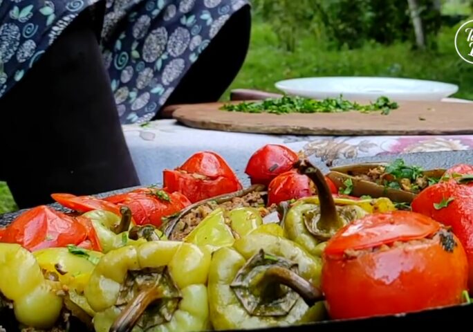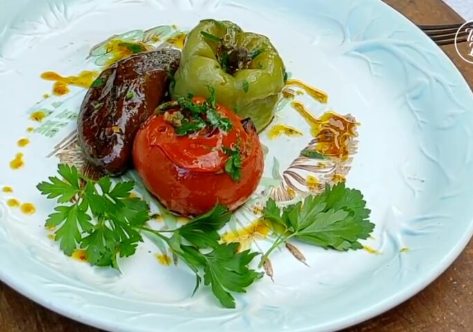 These three stuffed vegetables are very delicious and juicy. The spicy beef stuffing is the heart of this dish. Serve with fresh herbs and pita bread.