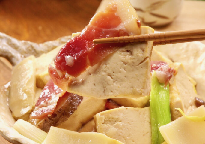 Dongpo Tofu soup is a traditional Chinese soup of Sichuan cuisine. The golden tofu is cooked in a soup with aromatic herbs and a finely sliced ham. Rich, delicious, and nutritious with a unique flavor. This is Dongpo Tofu!
