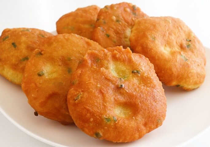 Easiest Donuts in the world! Extremely Fluffy and Crispy! These donuts will fulfill your wish after a crispy, savory snack. It is fluffy inside with a delicious green onion filling. Worth trying.