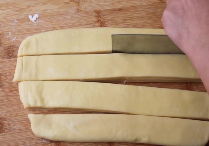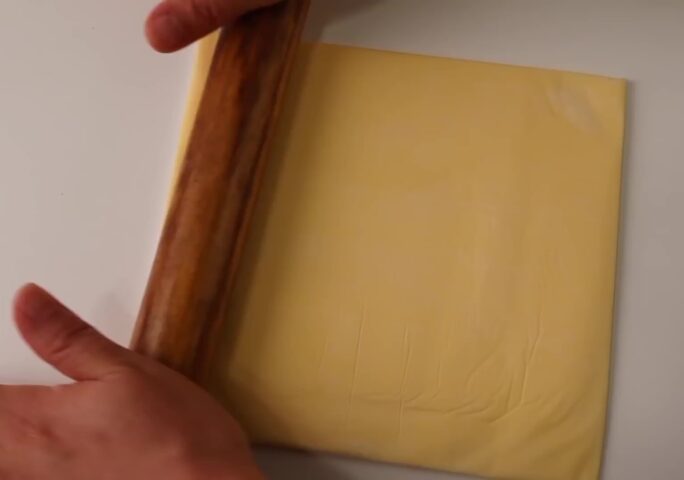 After folding, turn it over, press it with a rolling pin, and roll it flat.