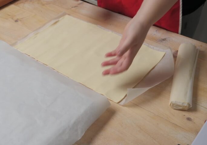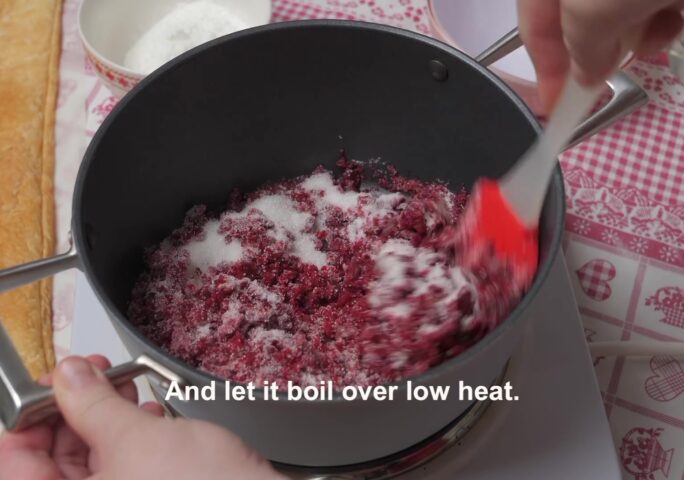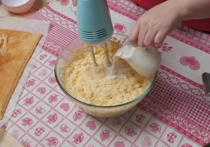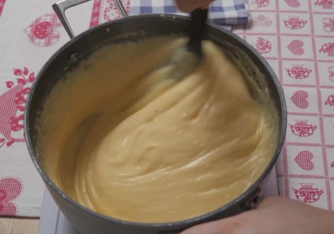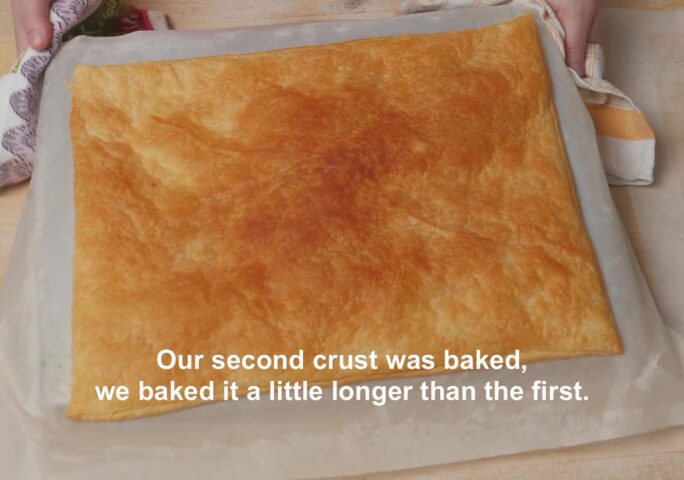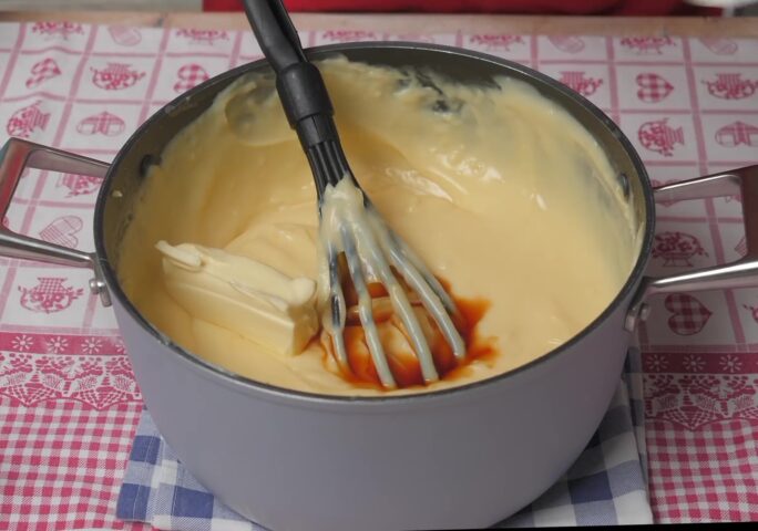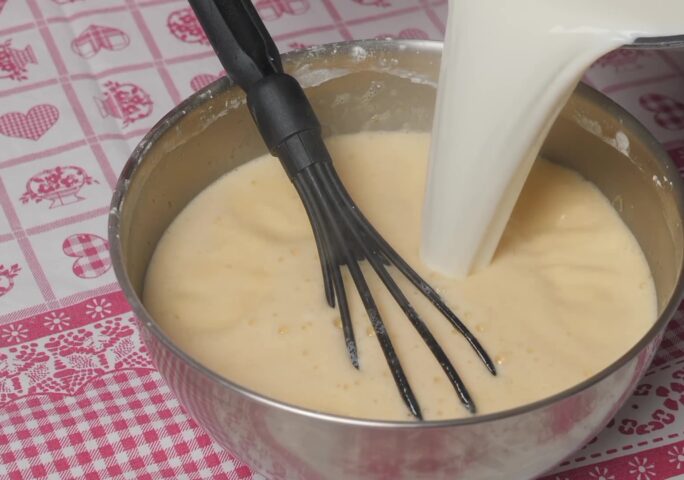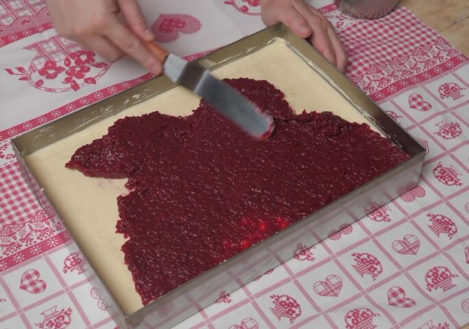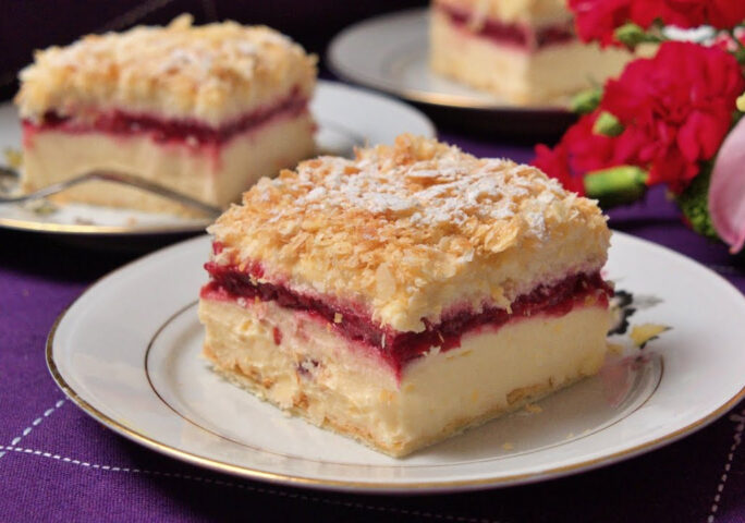 A real refreshing dessert from French cuisine – French pie. This layer of cherry jelly gives such a fine refreshing taste, but again not too strong, just enough to dilute the crepe itself a bit. As the French do not use puddings, we will not use them either.