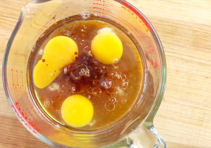 In a separate bowl combine eggs, coconut oil, maple syrup, and vanilla extract. Whisk until well combined.