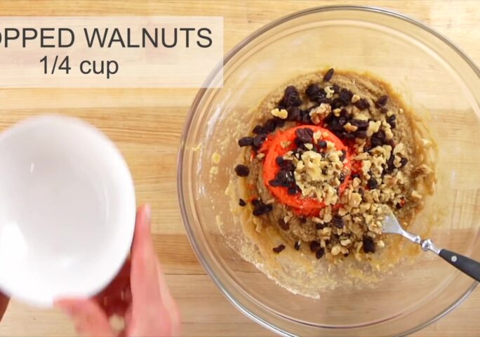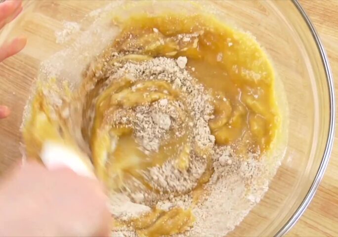 Add the wet ingredients to the dry and mix until all of the ingredients are just incorporated.