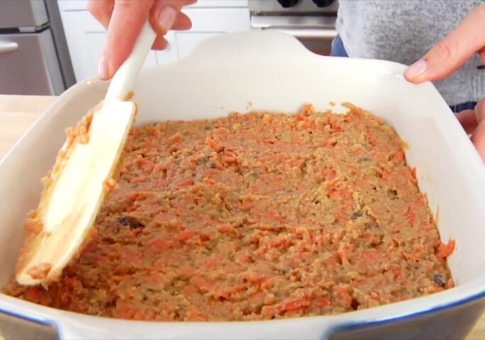 Transfer batter to greased pan and pop in the oven for 30 minutes or until cooked through. Cool completely.