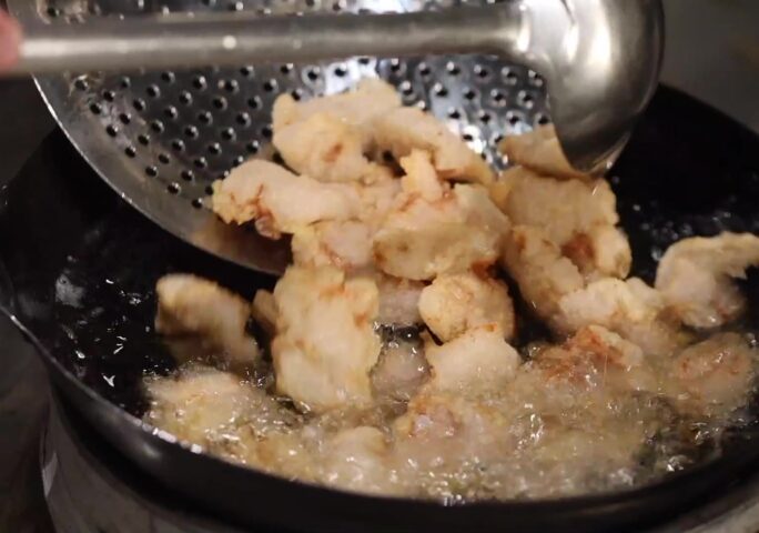 A vibrant sauce, made from sugar, rice vinegar, and a touch of soy, glazes the pork, infusing it with a rich, sweet, and slightly acidic tang. Garnished with shredded ginger for a warm, zesty kick and fresh cilantro for a burst of herbal freshness, this dish is an irresistible harmony of bold flavors and textures. This authentic North Eastern Chinese recipe of sweet and sour crispy pork is a culinary treasure from Dongbei, celebrated for its bold flavors. Perfect for savoring every bite!