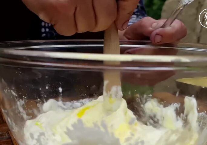 Mix the butter with the egg yolks, salt, sugar, and flour, until it forms a dough.