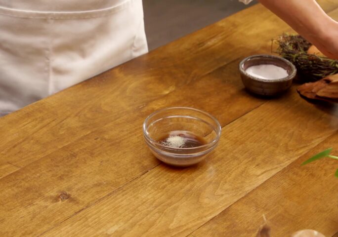 Use a medium-sized bowl to pour sugar, Shaoxing cooking wine, Zhenjiang balsamic vinegar, light soy sauce, and chicken soup into the gravy. Make sure not to add glutinous rice flour.