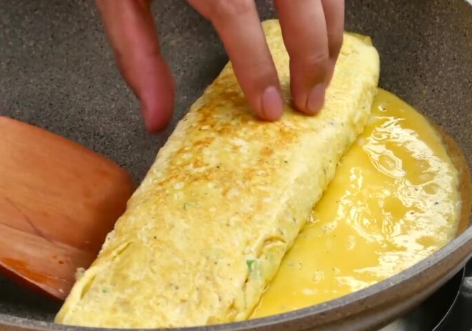 Kimchi Omelette: In a bowl, mix the eggs, water, salt and pepper. Then, roast iikim kimchi, removed of liquid, with a little cooking oil in a pan, over a medium heat. Apply adequate amounts of sugar and sesame oil while roasting. Fry an adequate amount of mixed eggs in a pan and top with some kimchi before the fried eggs are fully cooked.
