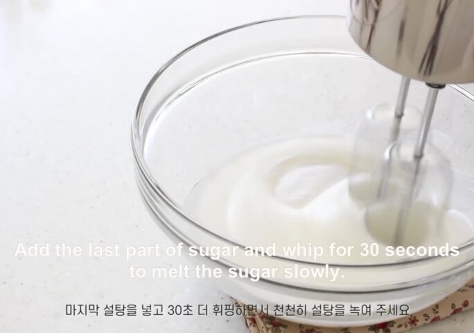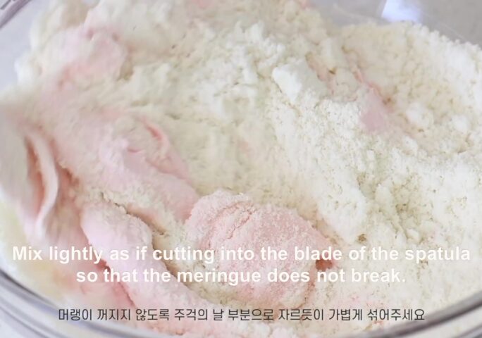 Put almond powder + sugar powder into the finished meringue and fold lightly with a spatula.