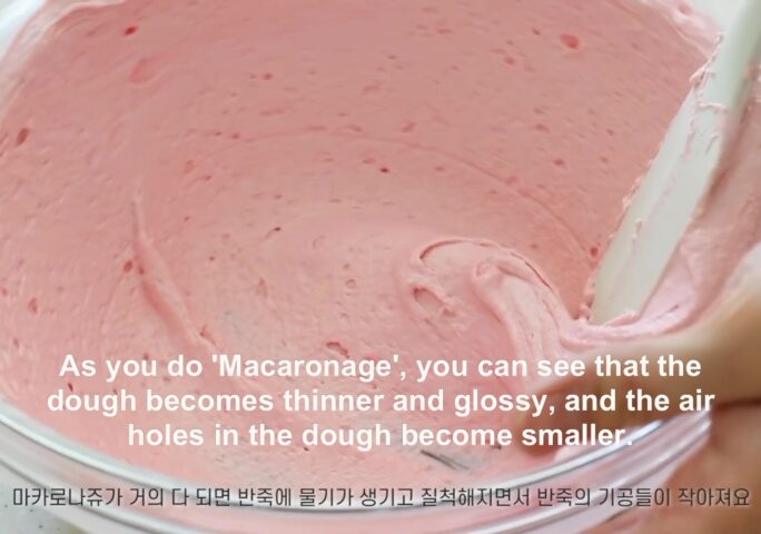 Do ‘Macaronage’ the batter spread like a tap on the side of the bowl.