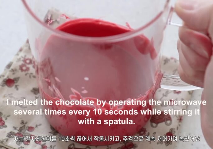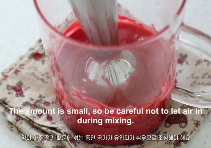 Cover with a plastic wrap so that it does not come in contact with the air, and then set until it has a good texture to pipe out. *In the video, I piped it out after hardening for about 2 hours. But I recommend letting it sit overnight because it has a better consistency and texture to pipe out.