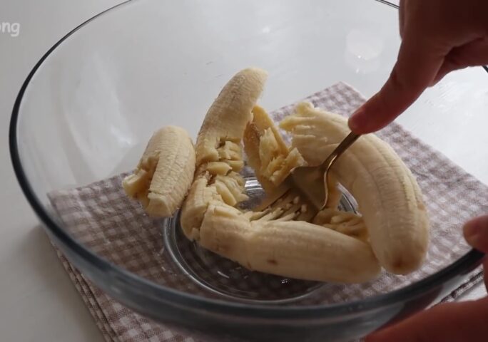 Mash the bananas with a fork until it forms a puree. Add instant yeast, milk and melted butter and mix it properly.