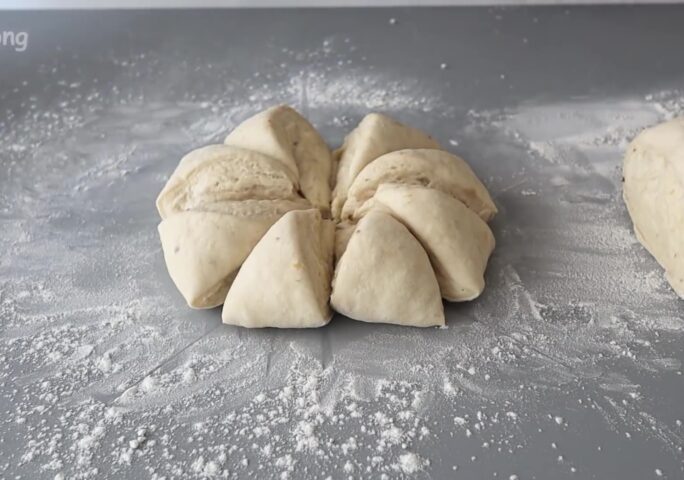 Take out the dough and sip with flour properly. Form a round shape from it a divide it into half.