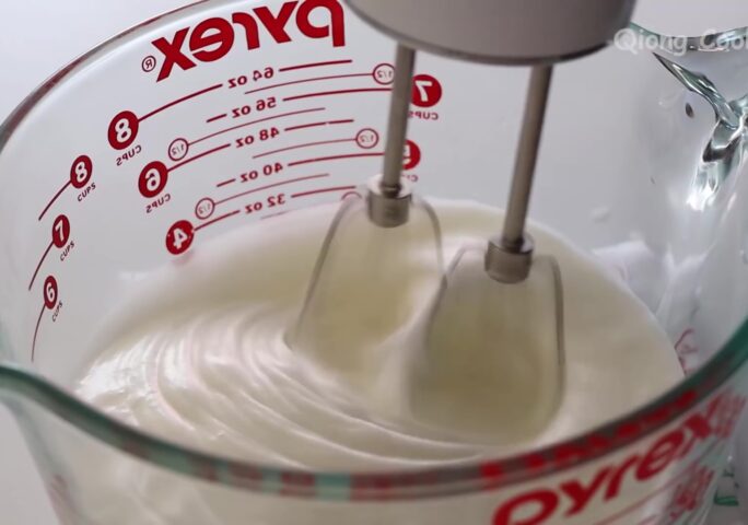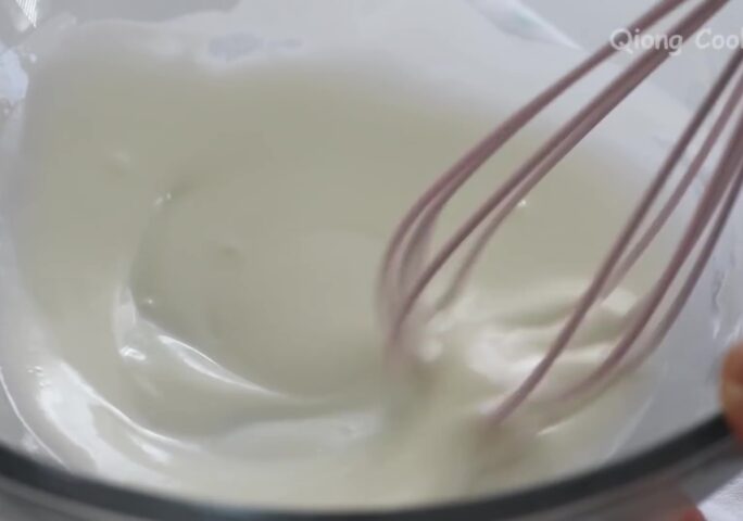 Mix milk and cooking oil. Mix well, the mixture is a thick texture like yogurt.