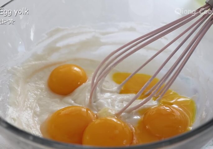 Put 6 egg yolks into the batter, add salt, and mix well.