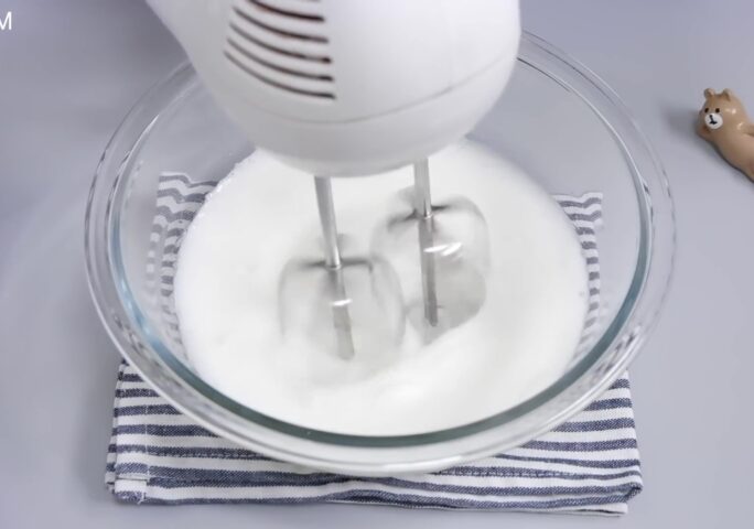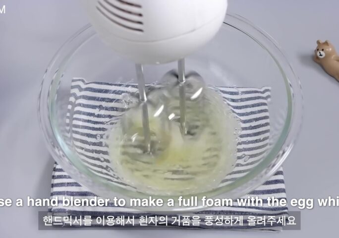 Stir the whites using a hand mixer.
