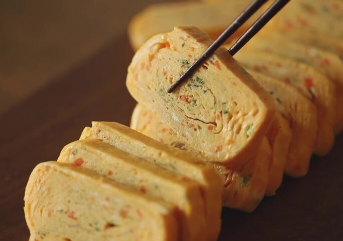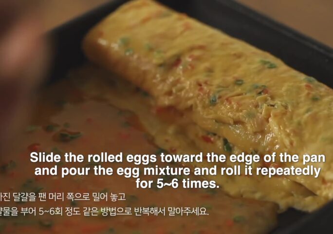 It is delicious as much as its big size! Have you ever seen such a big rolled omelet? I will show you the chunky and enormous rolled omelet made with 10 eggs! The first recipe of the new year, which is simple but full like a giant rolled omelet, begins now.