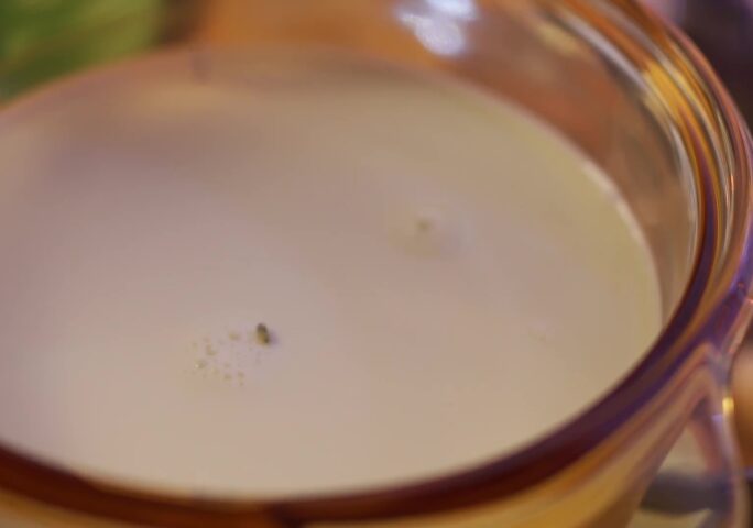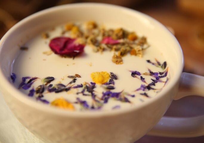 Add the chamomile and lavender to the hot milk. Let steep for 5-10 minutes, then strain the mixture into a mug. Sweeten with raw honey or maple syrup and add vanilla extract, if desired.