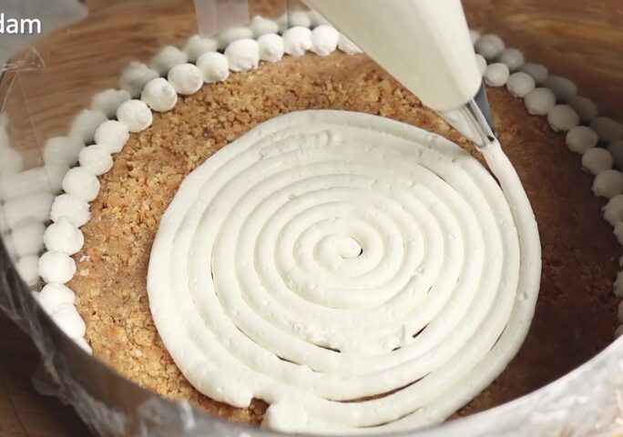 Grind the cookies finely. Mix the melted butter so that it permeates the cookie powder well.
