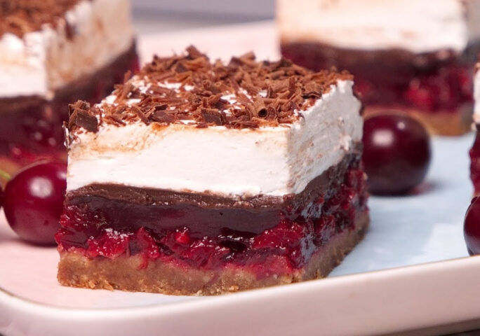 Fantastic combination of cherries and chocolate, packed in a Black Forest cake. You will be delighted by the fullness of taste and the ease of preparation of this cake without baking.