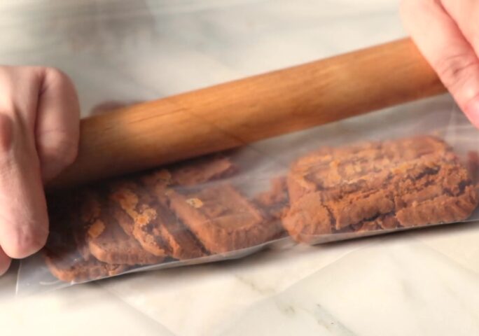 Crush Lotus into fine crumbs with a rolling pin. Add melted butter, mix combined.