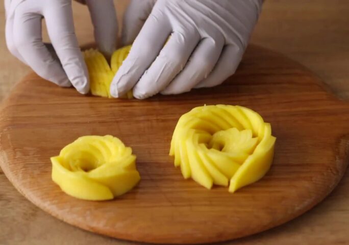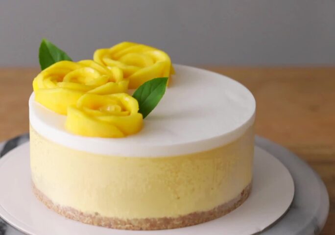 Creamy mousse-like mango filling on a biscuit base topped with beautiful mango roses, it’s an indulgent dessert for guests or parties. This mango cheesecake is a great recipe to try during the summer mango season, fresh mangoes always work best.
