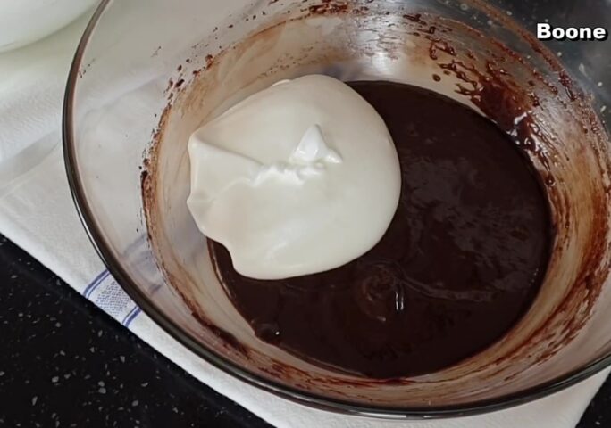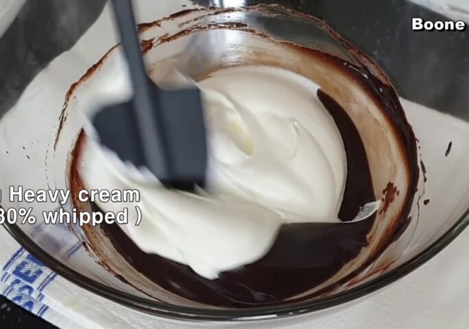 Add whipped cream (80%)to this mixture. Put the cream into a piping bag.