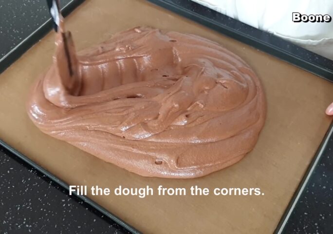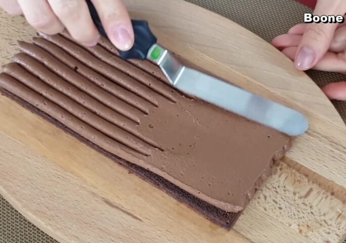Take the piping bag and put the cream on the cake as per the video. Spread it evenly and add the following layer of the cake and repeat the same process until the end.