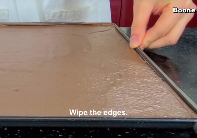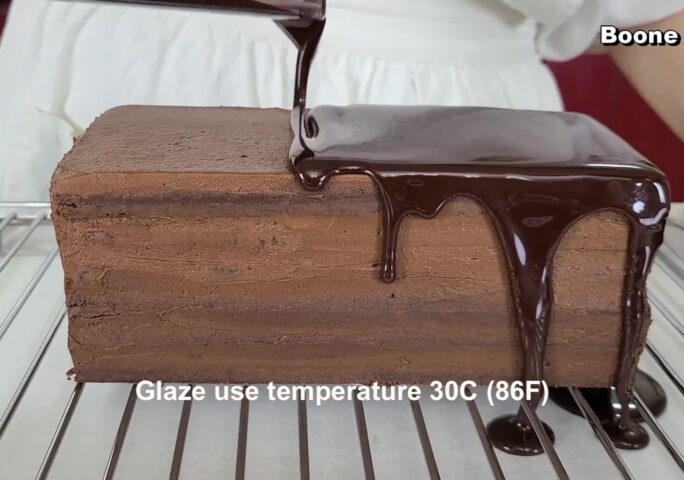 Pour the glaze on the cake. Glaze use temperature of 86 °F/30 °C.