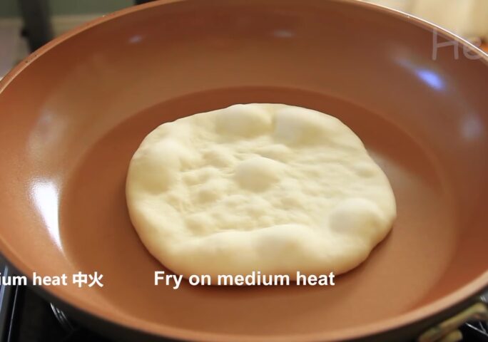 Fry for about 45 seconds or until there are air bubbles then flip.