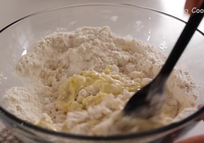 In a large mixing bowl, combine the all-purpose flour, baking powder, baking soda, salt, unsalted butter, egg, and water. Knead the mixture with your hands until it forms a smooth dough.