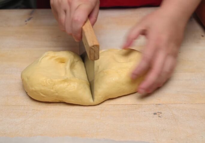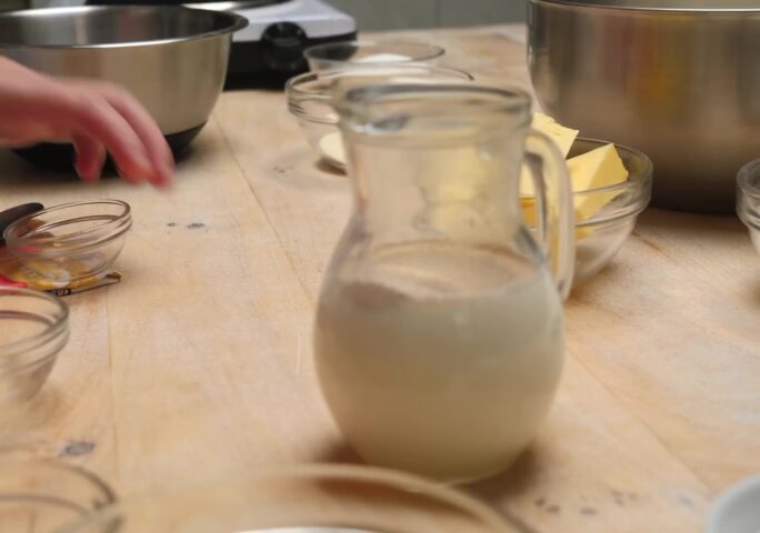 Heat the milk for the yeast. Also, heat the milk for the filling.